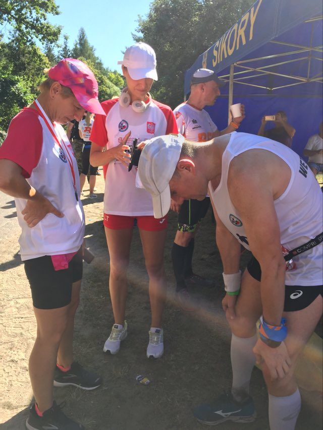 Jeśli ktoś teraz myśli, że mu gorąco to niech sobie wyobrazi niesamowitych ludzi na trasie 63 km biegu przy temperaturze 400 C na rozgrzanych łąkach. Tak, tak właśnie przy tej temperaturze 63 km biegu!! Cały bieg udało mi się ukończyć 3 lata temu. Dziś to tylko niewielki wkład w wysiłek całej drużyny. O samej imprezie można by wiele napisać. Brałem udział chyba w każdej edycji i za każdym razem jest lepiej. Nie wiem jak ci ludzie to robią. To jest potężny dystans, wiec logistycznie zabezpieczenie i przygotowanie trasy to ogromny wysiłek wielu ludzi. Podziwiam. Na mecie, jak zawsze wszystko dopięte wręcz perfekcyjnie. Jedzenie, medale namioty, lód dla biegaczy itd.”