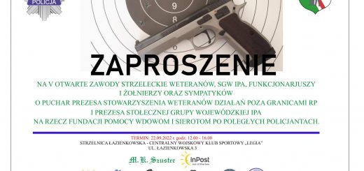 Stołeczna Grupa Wojewódzka Międzynarodowego Stowarzyszenia Policji IPA przy wsparciu Stowarzyszenia Weteranów Działań poza Granicami RP, Regionu Centralne Biuro Śledcze Międzynarodowego Stowarzyszenia Policji IPA oraz Fundacji Pomocy Wdowom i Sierotom po Poległych Policjantach są organizatorami Otwartych Zawodów Strzeleckich dla Członków Stowarzyszenia SGW IPA, Stowarzyszenia Weteranów Działań poza Granicami RP oraz „Sympatyków” o Puchar Prezesa Stołecznej Grupy Wojewódzkiej Międzynarodowego Stowarzyszenia Policji IPA i Prezesa Stowarzyszenia Weteranów Działań poza Granicami RP”.