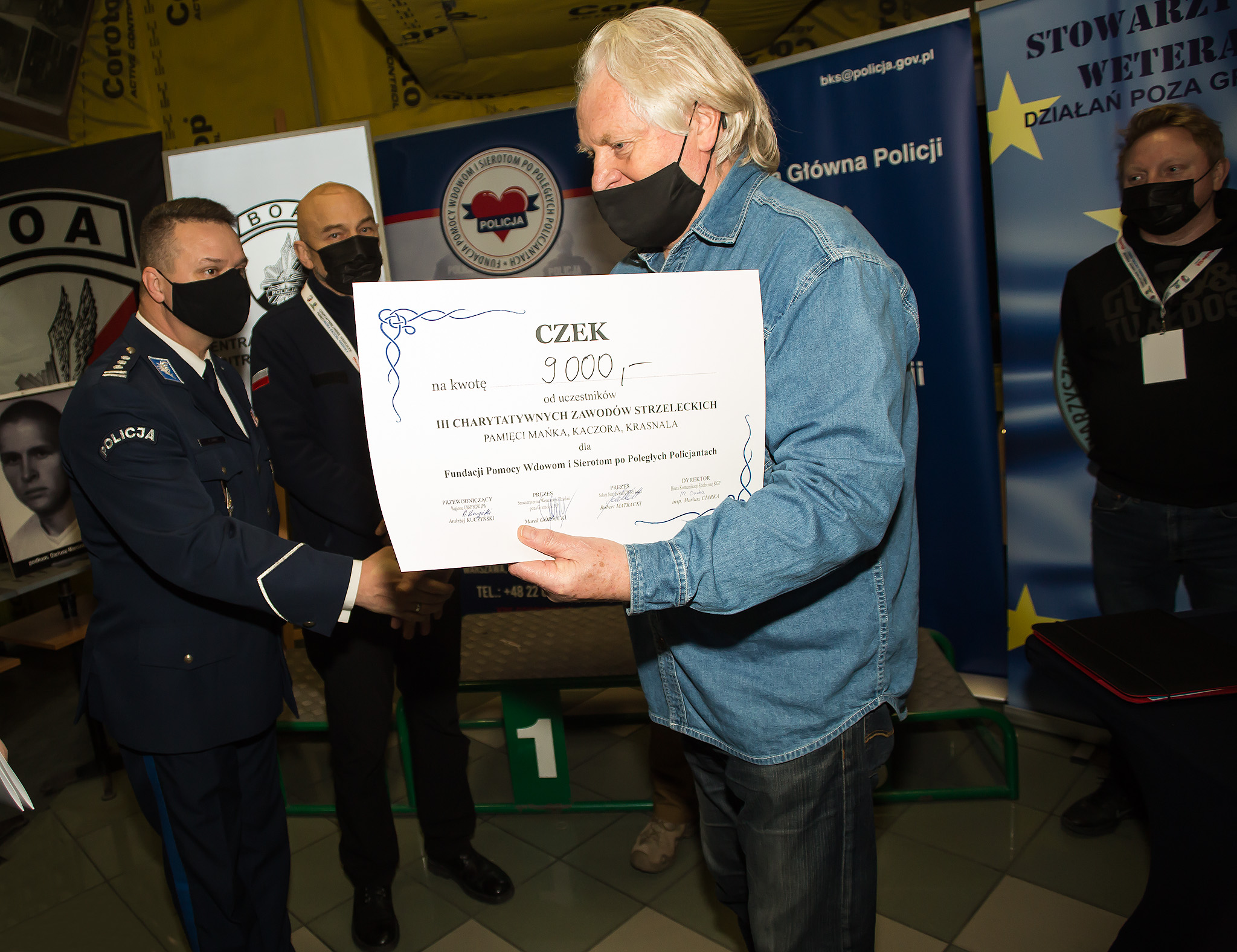 Przekazanie czeku przez pomysłodawcę i organizatora imprezy Andrzeja „Pułkownika” Kuczyńskiego, insp. Mariusza Ciarkę oraz mł. insp. w st. spocz. Marka Górnickiego na ręce sekretarza Fundacji Pomocy Wdowom i Sierotom po Poległych Policjantach mł. insp. w st. spocz. Zenona Parchimowicza nastąpiło po zakończeniu rywalizacji i uhonorowaniu zwycięzców. Dzień później skarbonka z całą zebraną kwotą została przekazana Prezes Fundacji Pomocy Wdowom i Sierotom po Poległych Policjantach Pani mł. insp. w st. spocz. Irenie Zając.