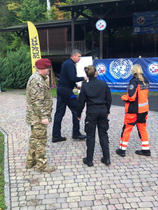 Start i meta znajdowały się w Skansenie Górniczo – Hutniczym, Leszczyna koło Złotoryi. Na 20 km trasie Pogórza Kaczawskiego maszerowali weterani – policjanci i żołnierze oraz uczniowie klas mundurowych. Uczestnikom przygotowano liczne atrakcje wykorzystując zaplecze Bazy Lotniczej Baryt i jej Jednostki Poszukiwawczo – Ratowniczej. Pogoda dopisała… na trasie było pełne zabezpieczenie medyczne i punkty żywieniowe – nie zabrakło tradycyjnej grochówki. Maszerując z płk. rez. WP wspominaliśmy wspólne misje z perspektywy żołnierza i policjanta. Na mecie wszyscy uczestnicy otrzymali pamiątkowe coiny, a najlepsi nagrody w kategoriach weteran, klasa policyjna, osoba cywilna i weteran – najstarszy uczestnik. Przy kawie, herbacie i kiełbaskach z grilla niekończącym się rozmowom i wspomnieniom nie było końca – obiecaliśmy sobie spotkanie za rok. Marcinie i Robercie… bardzo dziękuję za perfekcyjnie przygotowane wydarzenie – Marek, Prezes.