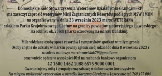 Marsz Weterana zorganizowany przez Dolnośląskie Koło Stowarzyszenia Weteranów Działań Poza Granicami RP, wzorowany na Marszu Duńskim odbył się w dniu 1 października 2022 r. Do uczestnictwa w marszu Prezes Koła Marcin Zawiślak zachęcał pisząc…
