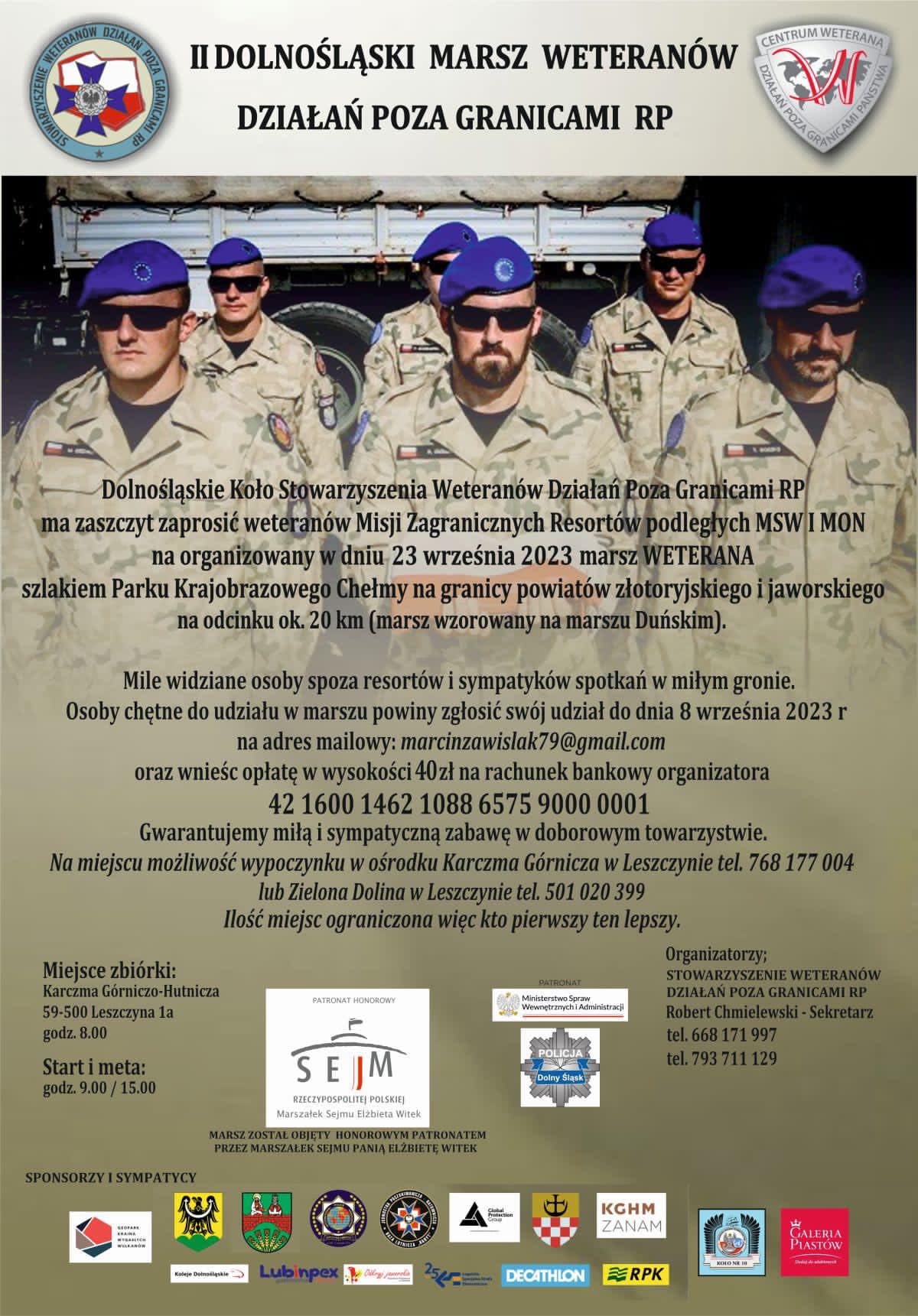 II Dolnośląski Marsz Weteranów – zapraszamy … 11 września 2023 Regulamin: https://swmsw.pl/wp/wp-content/uploads/2023/08/Regulamin-Marszu.pdf