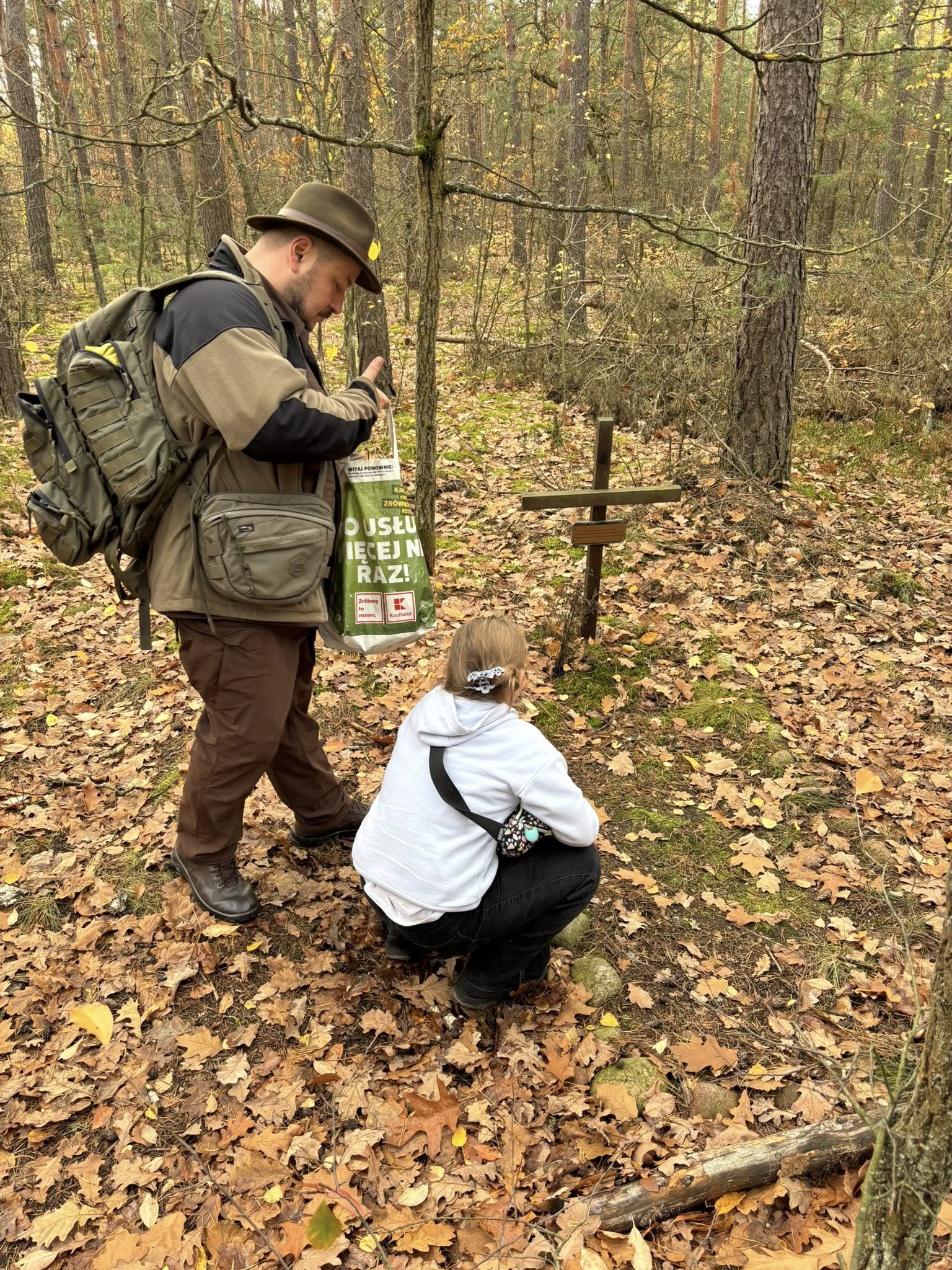 W przeddzień Święta Zmarłych (dawne Dziady), wsparty przez kierownika Filii „Piaski” Muzeum Historycznego w Legionowie i jego córki, mając zgodę Lasów Państwowych na poruszanie się pojazdem w lesie – odwiedziliśmy mogiły żołnierskie z 1944 r. rozsiane w jabłonowskim lesie.